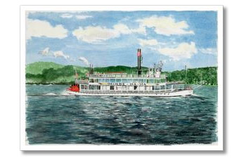 Lake George Village. This authentic steam powered vessel was built by H.M.